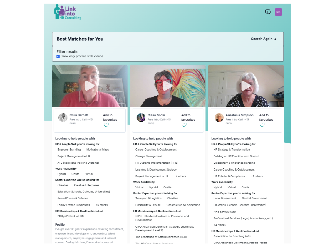 Match effortlessly to the best HR consultants, with experience across 38 different sectors